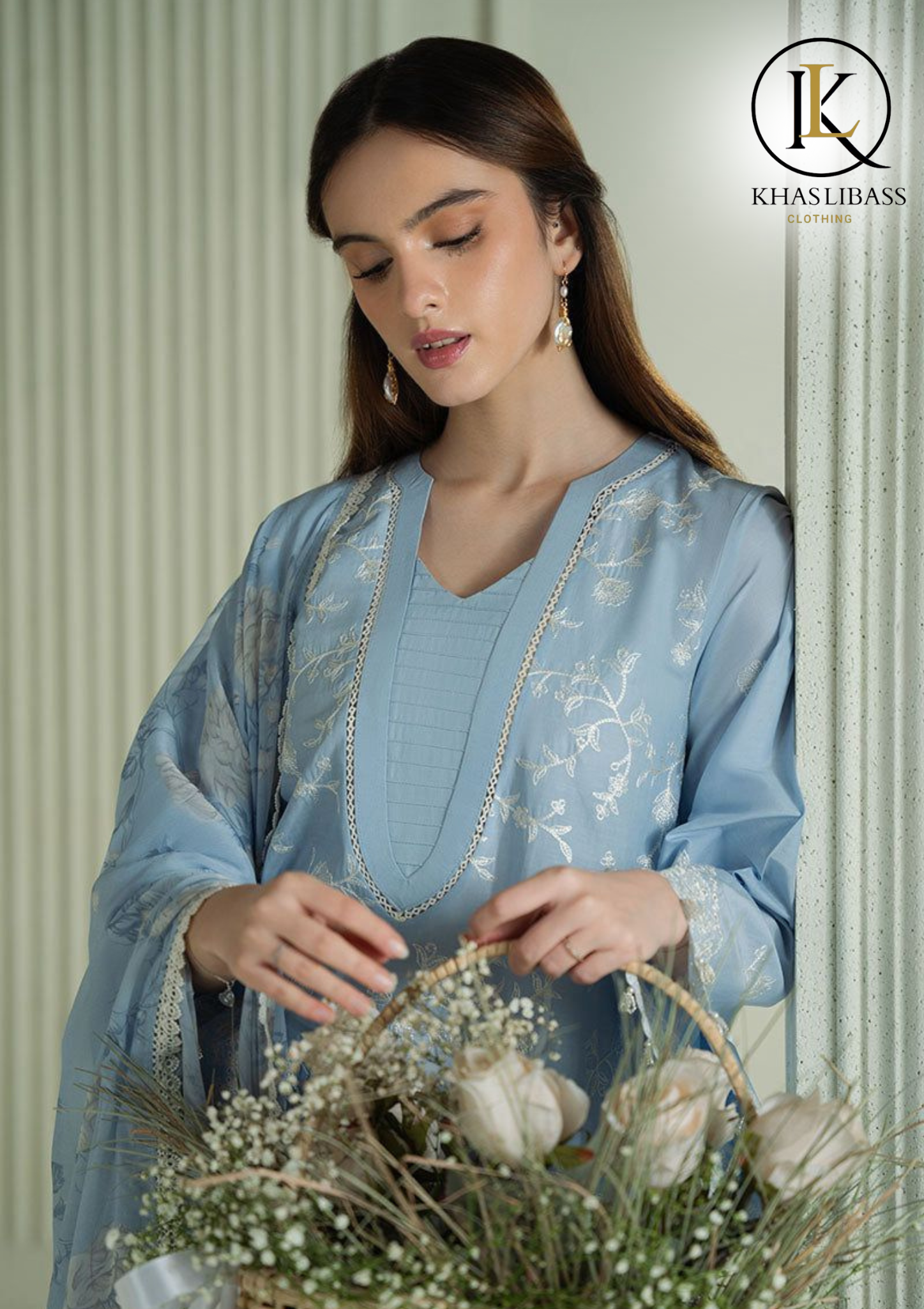Summer Unstitched 3PC Lawn Embroidered Shirt With Swiss Voil Dupatta KL-247