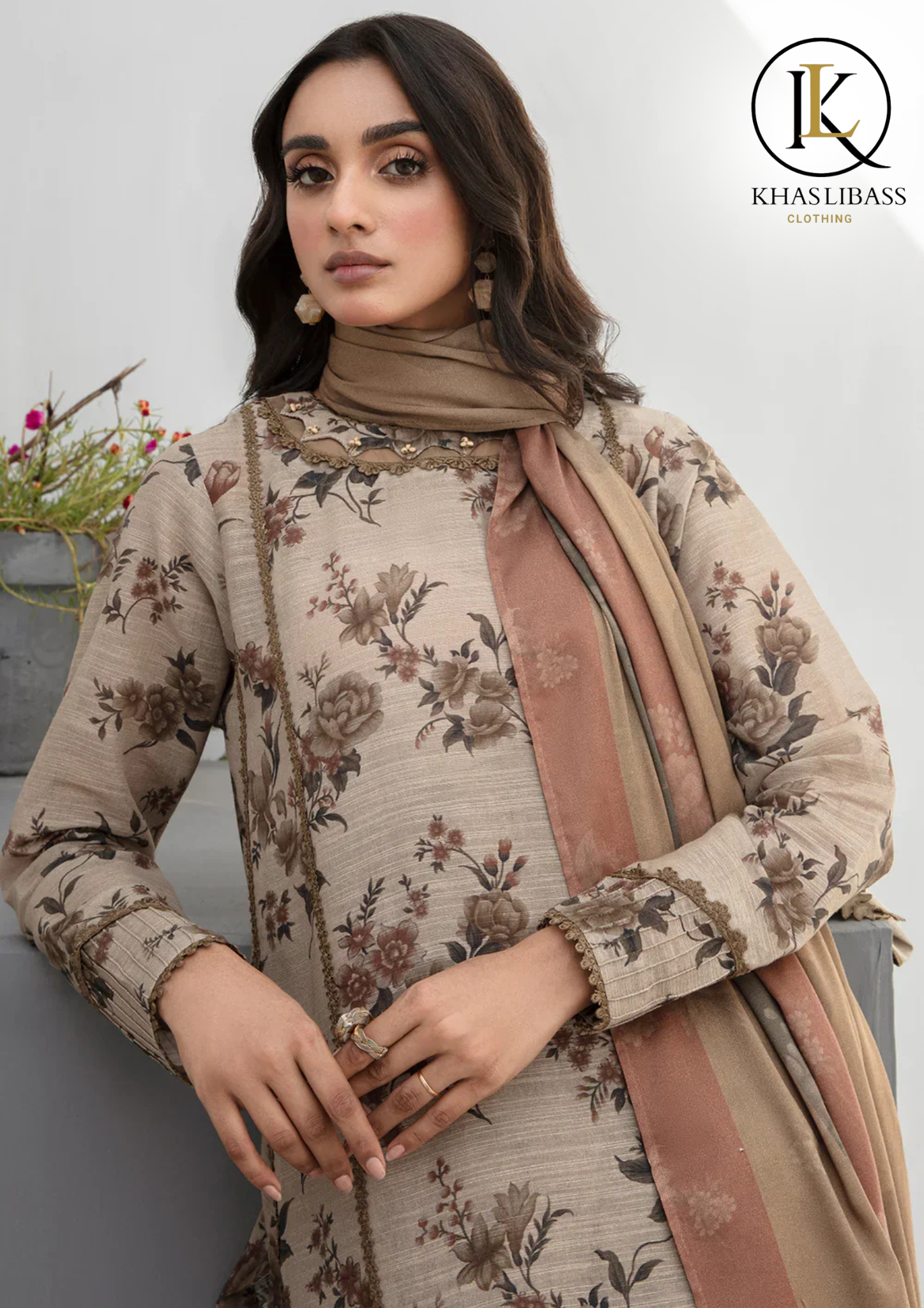 Winter Unstitched 3PCs Digital Printed Khaddar Dress With Digital Printed Khaddar Dupatta KL-388