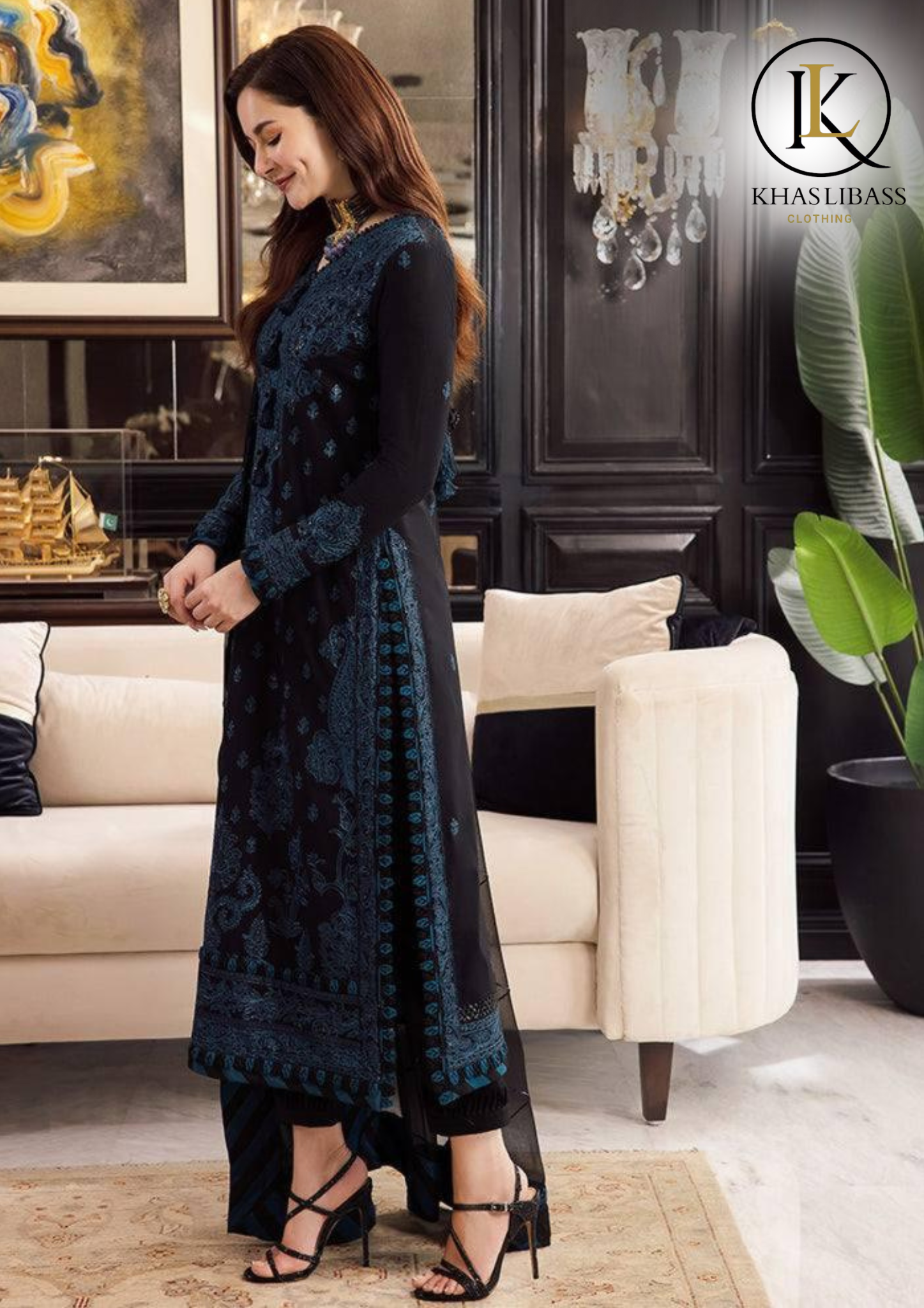 - Premium Embroidered Dhanak Shirt Front Full Heavy Embroidered