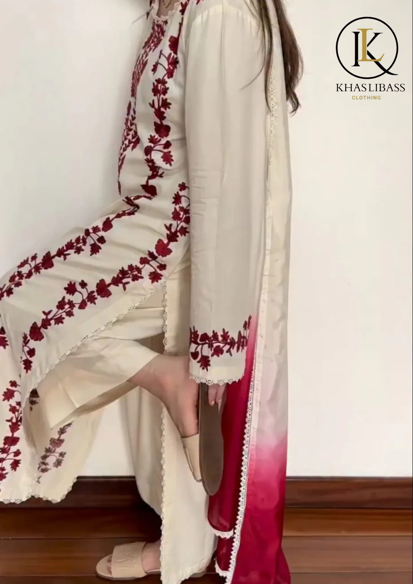 - Winter Unstitched 3PCs Embroidered Dhanak Dress