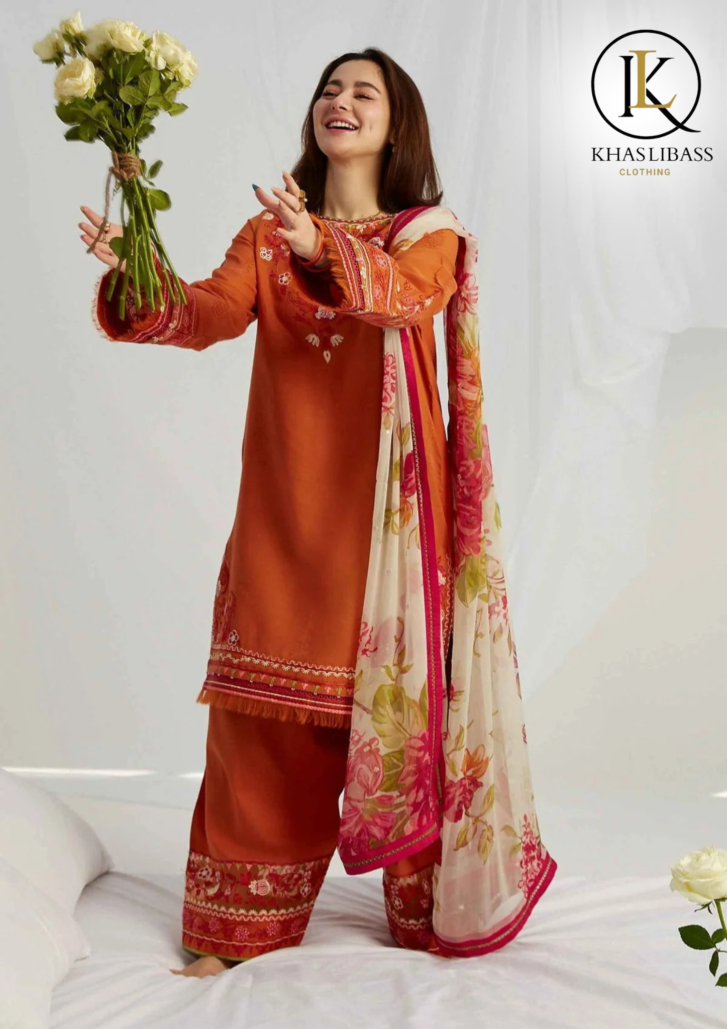 - Winter Unstitched 3PCs Embroidered Dhanak Dress