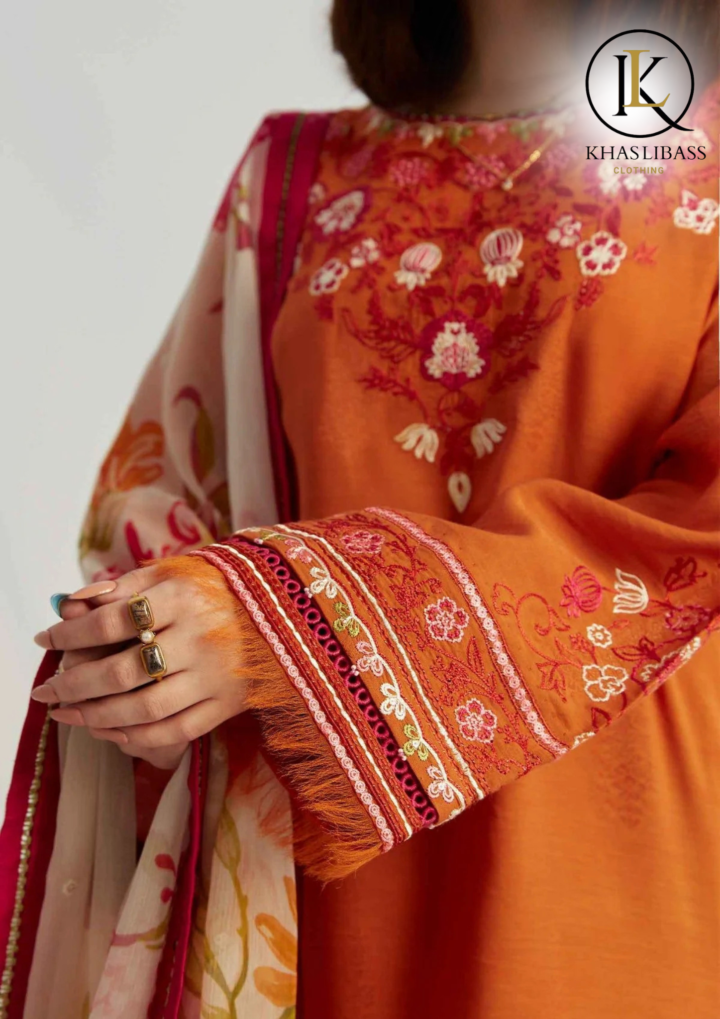 Winter Unstitched 3PCs Embroidered Dhanak Dress With Printed Dhanak Shawl KL-322