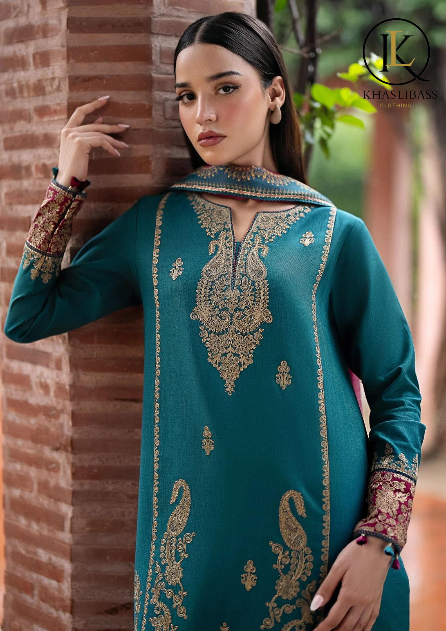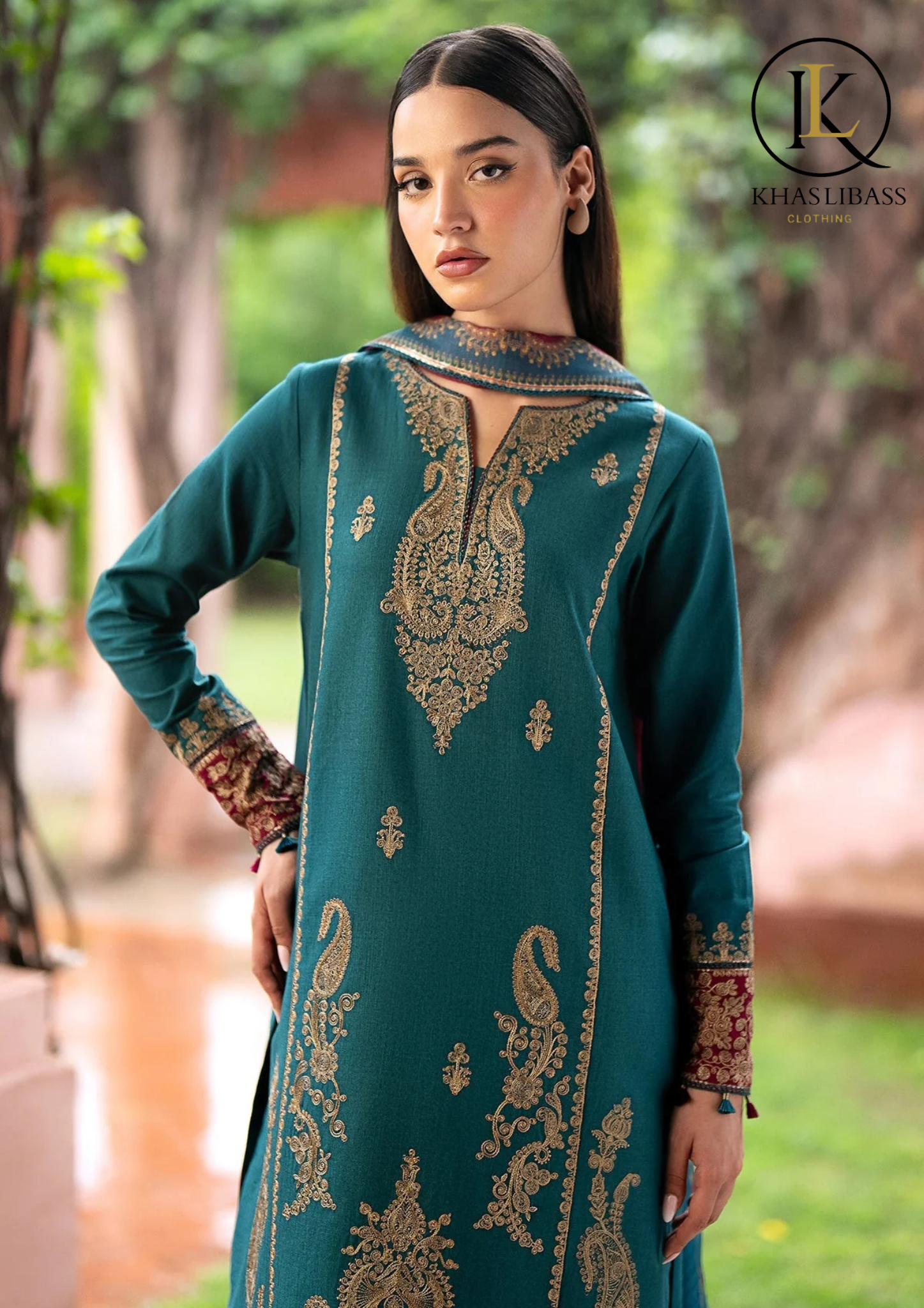 Winter Unstitched 3PCs Embroidered Dhanak Dress With Wool Printed Shawl KL-441